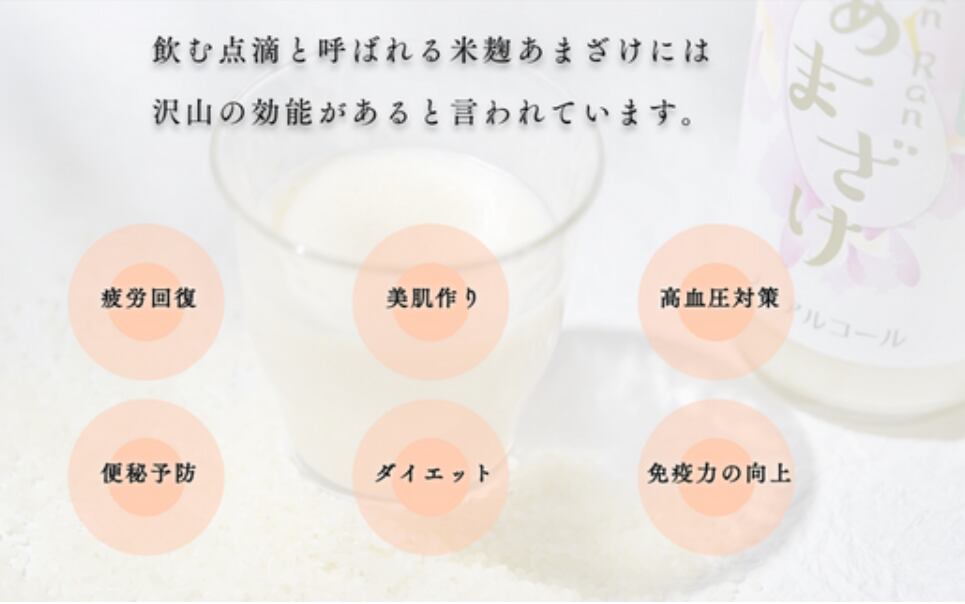・肥満抑制など、あまざけには飲む点滴・飲む美容液とよばれるさまざまな効能がございます。